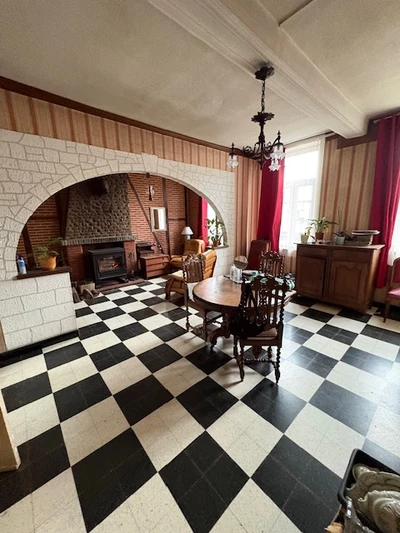 Cette propriété propose environ 200 m2 habitables à repenser selon vos envies, avec la possibilité d'aménager jusqu'à quatre chambres et un grand séjour chaleureux avec cheminée feu de bois, idéal pour créer un espace de vie convivial et authentique.