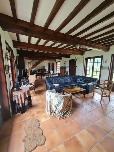 Nous vous proposons une maison type longère avec beaucoup de cachet,grande cheminée en pierre et poutres apparentes avec 4 chambres sur le territoire de Canlers. L'agence immobilière L'AS DE L'IMMOBILIER se fera un plaisir de vous aider pour en savoir plus ou vous faire accompagner dans votre recherche de logement. Totalisant 210m2, l'espace intérieur est formé d'un espace cuisine très bien équipée , un coin salon de 60m2, 4 chambres dont une grande en rez de chaussée et une salle de bain. Cette villa vous fait bénéficier d'une cave entièrement voutée.Vous serez séduit par le charme de cette maion qui dispose d'un jardin occupant une surface de 4585m2. Le bien s'accompagne d'une aire de parking pouvant mettre 4 voitures,1 garage et dépendances complètent ce bien .