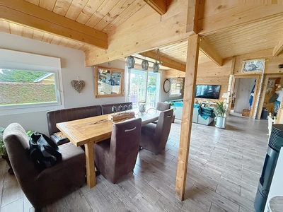 Sur une première parcelle de 1300 m2, découvrez une magnifique maison de 90m2 et 3 gîtes de 25m2 chacun au totale , construction bois d'une dizaine d'années, dans un état exceptionnel, d'une propreté rare et d'une finition parfaite. Tout en plain-pied, La maison vous offre vous offre :