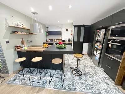 Une cuisine équipée, moderne et conviviale, ouverte sur la pièce de vie.