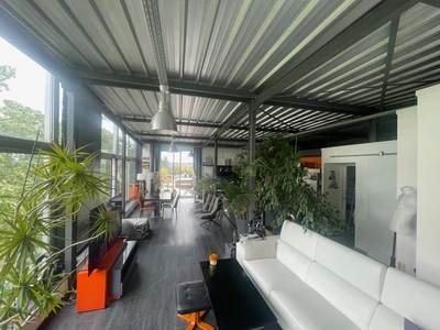 Véritable atout de ce loft : une superbe terrasse de 60 m2 exposée Sud-Est, sans vis-à-vis, avec une vue totalement dégagée.