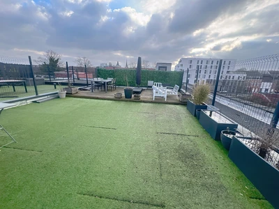 Tourcoing dans une petite copropriété de 15 lofts situé à proximité du Centre,Commerces et à deux minutes à pied du Métro. Ce Loft de 120 M2 avec 3 chambres vous séduira pour sa lumière et ses finitions ,un grand séjour ouvert sur une cuisine équipée,vue dégagée ,3 chambres , salle de bain douche et baignoire,buanderie,nombreux rangements , Terrasse en Rooftoop de 80m2 , 1 place de parking. Proche métro, centre Tourcoing les bains !!