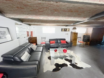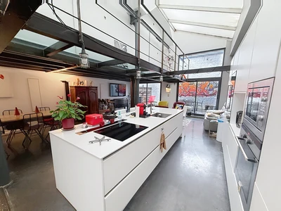 TOURCOING Flocon, proche Mouvaux, dans une petite copropriété de 9 lots, Ce loft de 192m2 a pris place dans une ancienne usine. Une grande terrasse sur l'avant vous accueille vers le séjour et la cuisine équipée et une seconde terrasse plein sud. Un premier espace en mezzanine dessert 3 chambres et une salle de bains et buanderie.~Au sous sol, une pièce de 45m2 pourra s'improviser en chambre ou profession libérale~le loft vous impressionnera par les volumes et le cachet industriel~Place de parking privée viendra conclure le loft.
