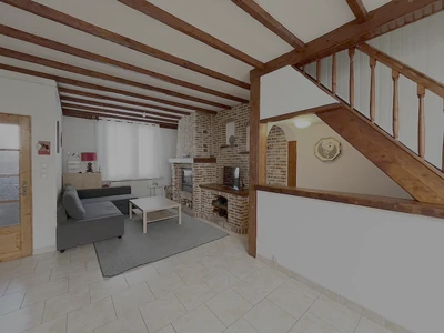 Au rez-de-chaussée, profitez d'un grand salon-séjour chaleureux agrémenté d'une cheminée feu de bois, idéal pour vos soirées d'hiver, ainsi qu'une belle cuisine équipée, moderne et fonctionnelle.