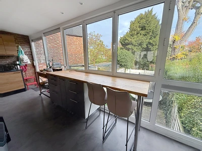Tourcoing Centre -- Quartier du Théâtre Très belle maison bel-étage rénovée -- 120 m2 -- Jardin arboré -- Garage Située dans l'un des secteurs les plus recherchés de Tourcoing, à deux pas du théâtre, cette superbe maison bel-étage de 120 m2 saura vous séduire par sa luminosité, son plan idéal et son excellent état général. Son bel étage offre un salon-séjour baigné de lumière avec cuisine équipée ouverte, un espace convivial et chaleureux grâce à sa position en premier étage. Rez-de-chaussée : Garage Grande chambre / espace indépendant (idéal profession libérale, studio Airbnb, ou chambre parentale). Salle de bain. Accès à une agréable terrasse 1er étage : Spacieux salon-séjour très lumineux, Cuisine équipée ouverte, Salle de bain 2e étage : 3 chambres, possibilité d'une salle d'eau .dressing Maison entièrement rénovée, Jardin arboré exceptionnel. Rare sur le secteur, Possibilité profession libérale / location courte durée. Commerces, métro, écoles à proximité immédiate Un bien unique offrant le confort moderne au coeur de la ville, avec un extérieur verdoyant rare à Tourcoing.